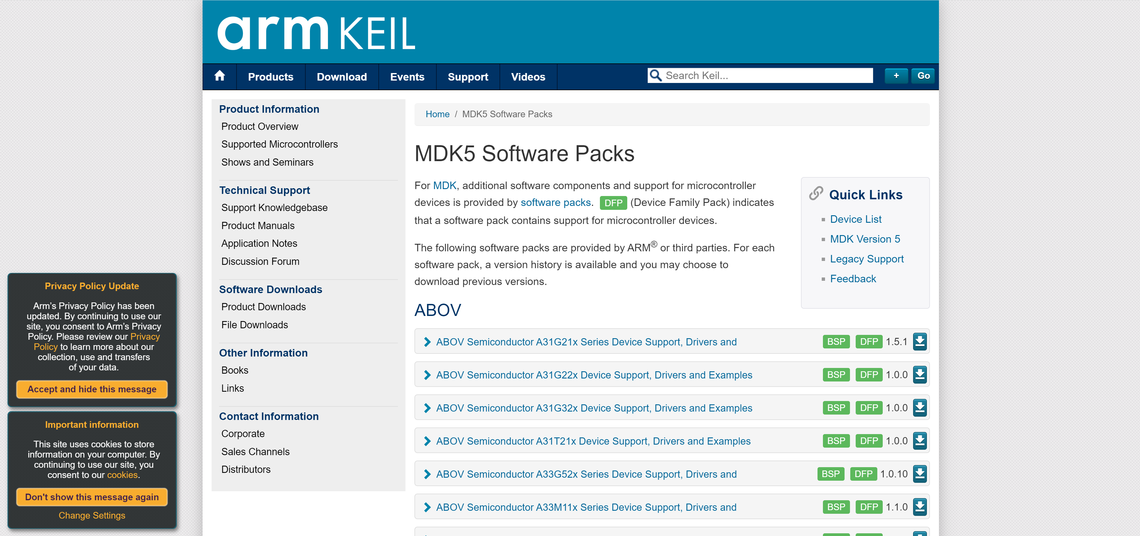 大家都知道KEIL从V5版本开始就不像从前的版本那样集成了很多芯片的资料,现在如果需要使用某款芯片,则需要额外去下载对应的芯片资料包。目前有两个途径去下载,比较直达的是打开KEIL后使用PACK INSTALLER,去选择对应需要的芯片,KEIL会自动完成下载和安装;还有一种方法就是去KEIL官网,直接想要的软件包,下载后解压安装即可
