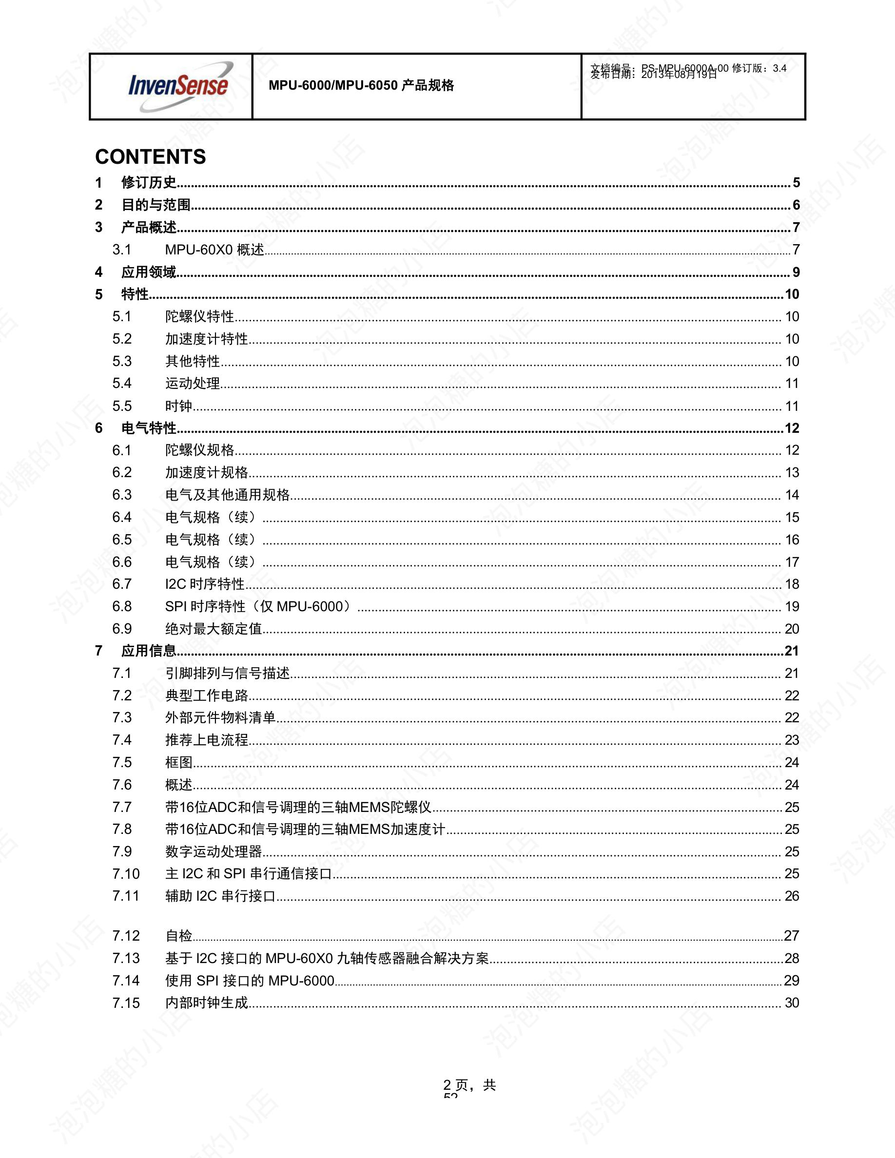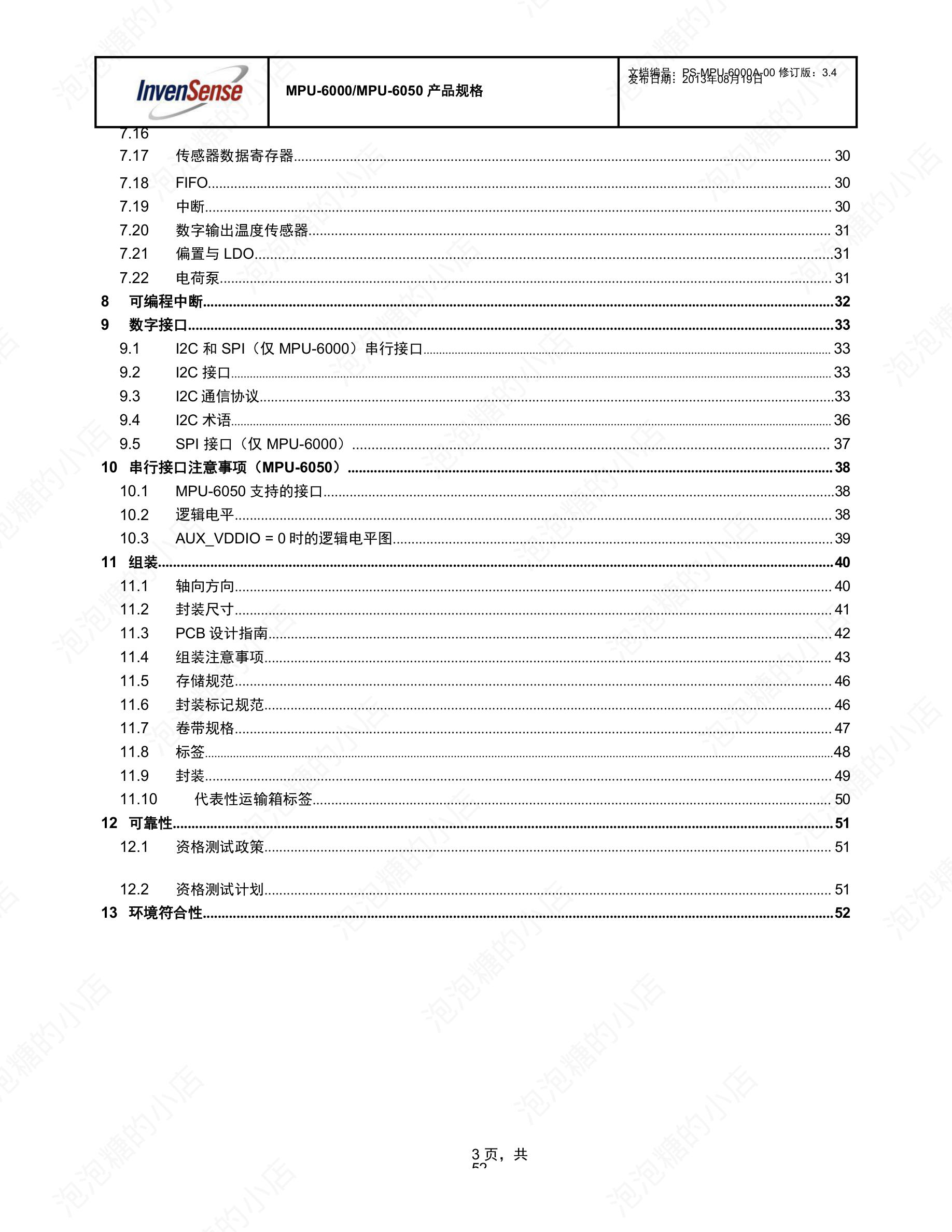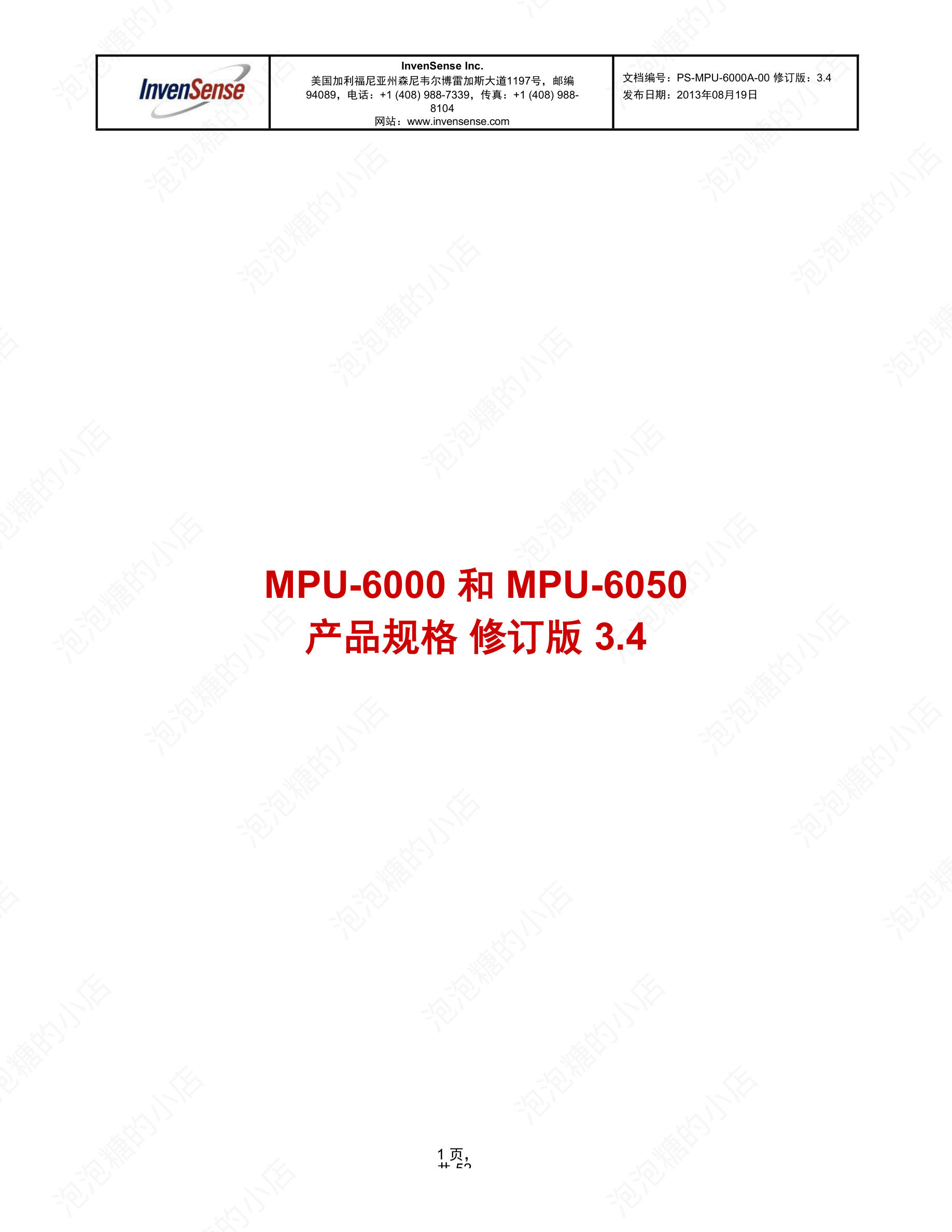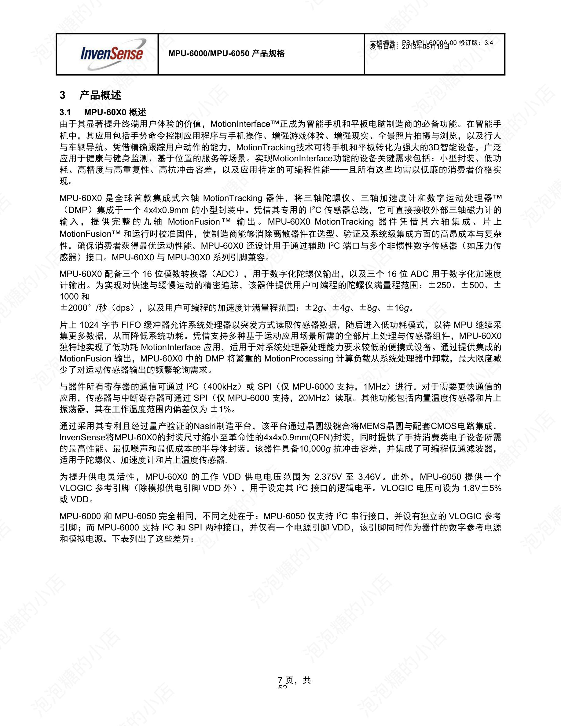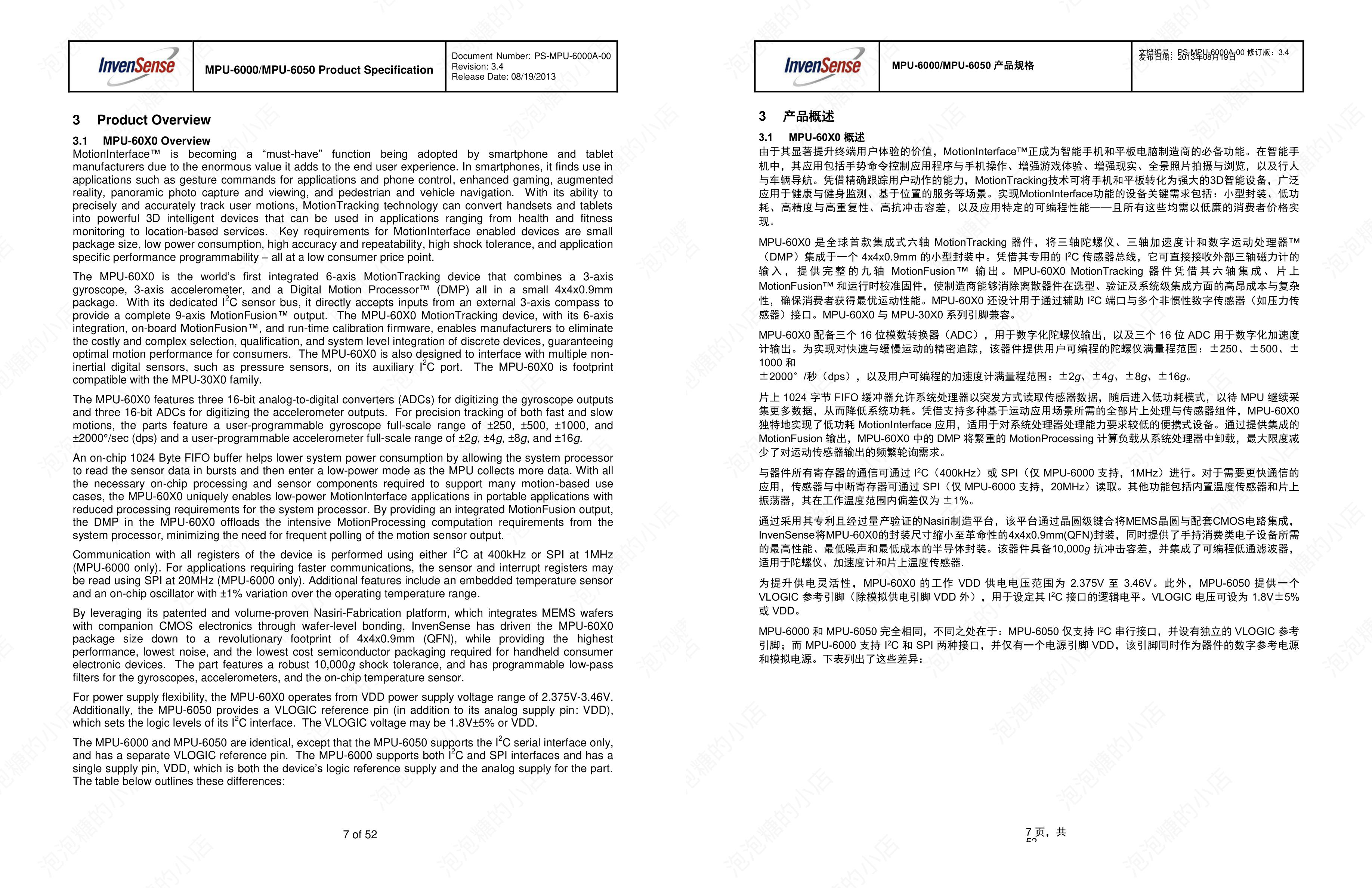 MPU-6050 中文规格书发布(6轴运动跟踪传感器,完整中英对照)