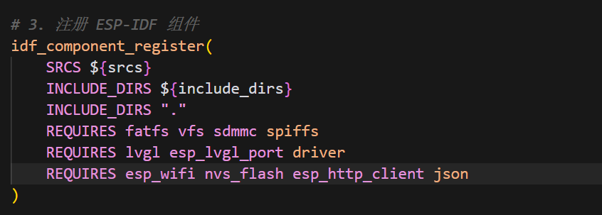 添加esp_http_client和json这两个组件的声明