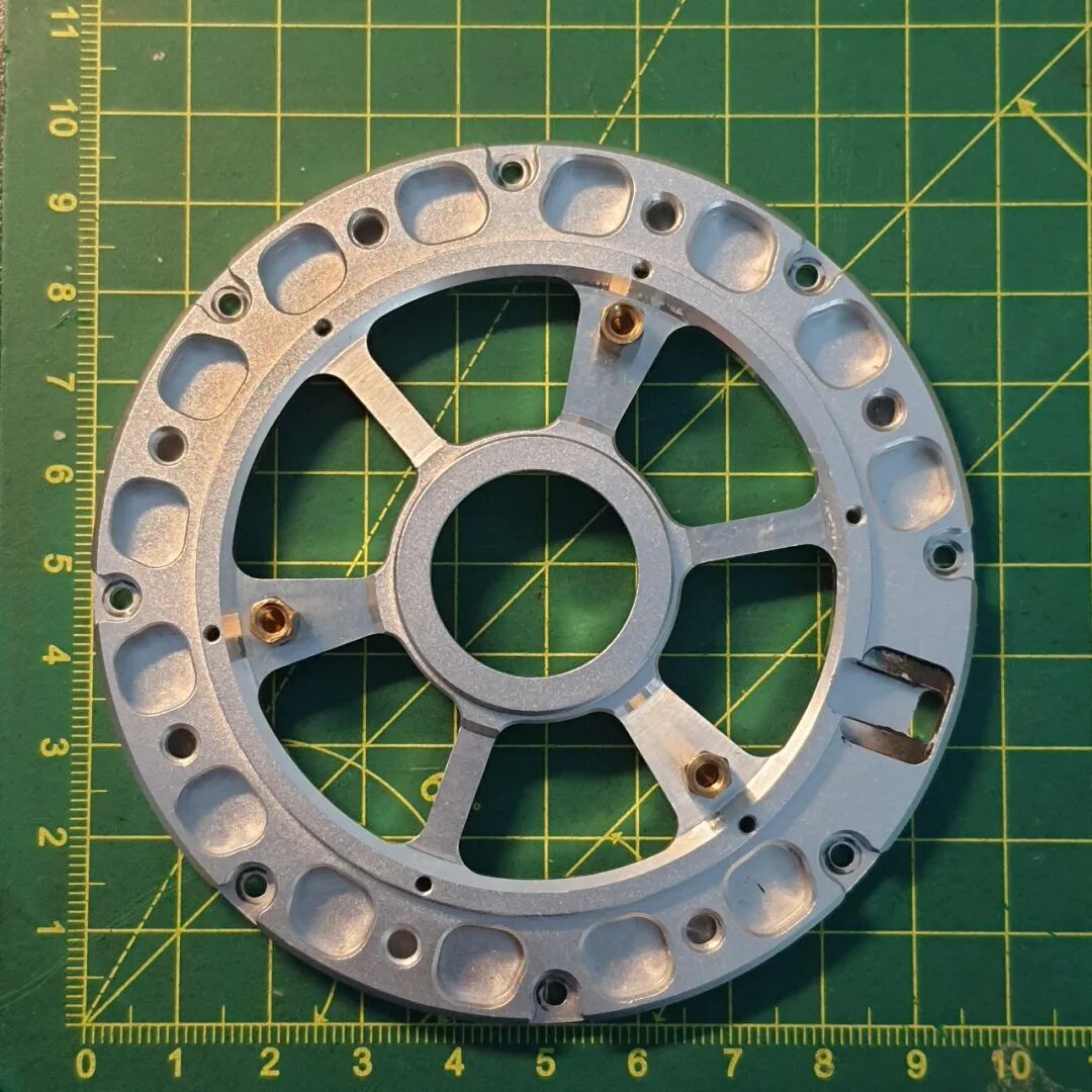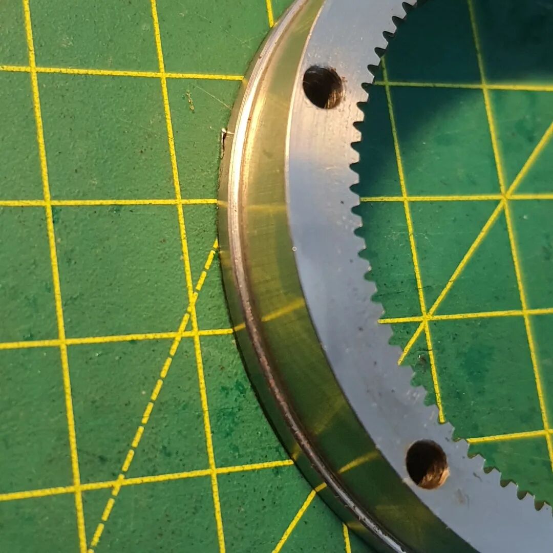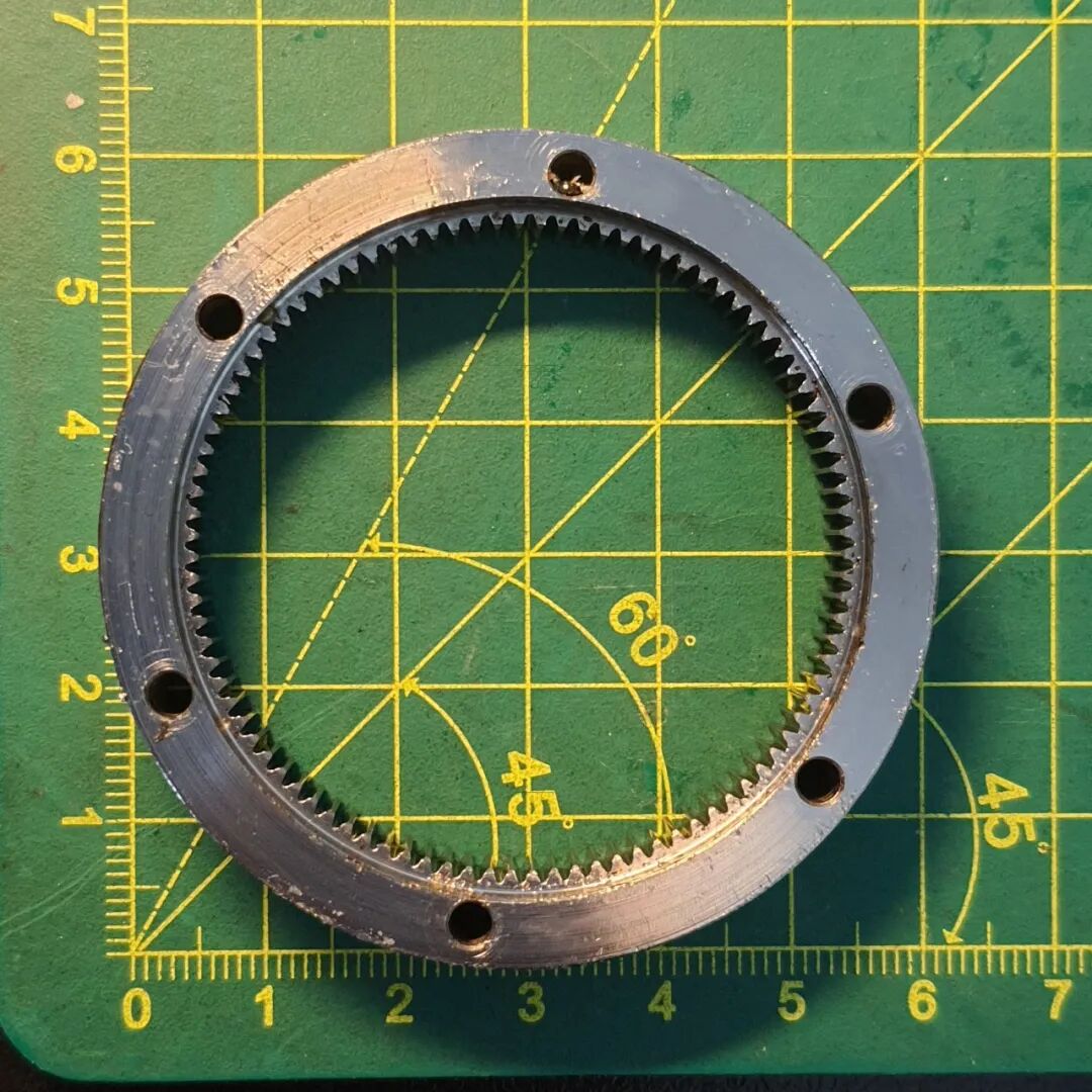 行星齿轮有38个齿,并且使用滚针轴承而非滚珠轴承。环形齿轮有95个齿,这意味着减速比为1:6,既能获得高扭矩,又能保持反向驱动能力。