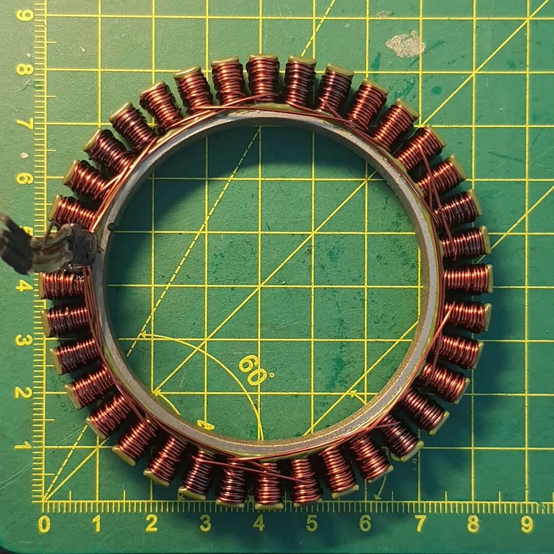 定子有36个槽,每个槽绕有16圈0.8mm的导线,不过,定子没有任何锁定机构,它仅靠与顶板的摩擦力固定。