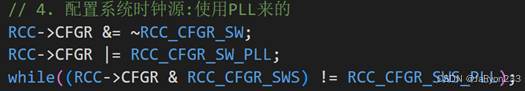 while((RCC->CFGR & RCC_CFGR_SWS) != RCC_CFGR_SWS_PLL);