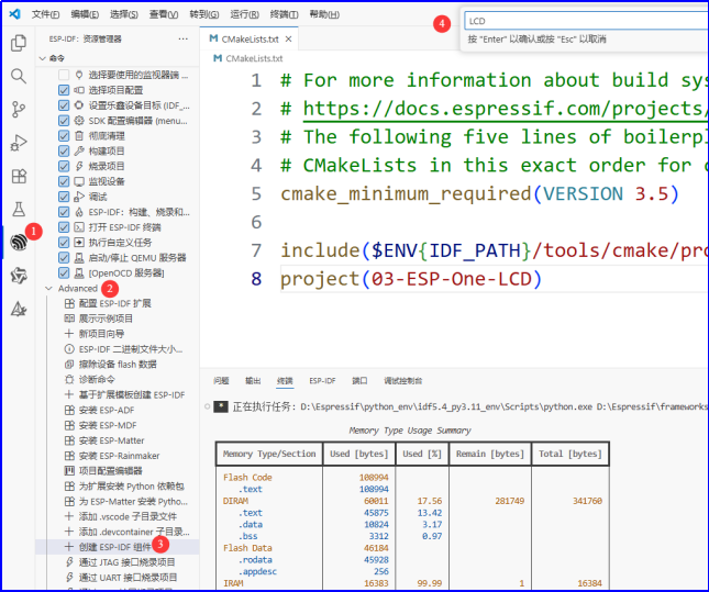 推荐使用VSCode+ESP-IDF5.4插件,避免手动配置环境变量的繁琐,核心步骤: