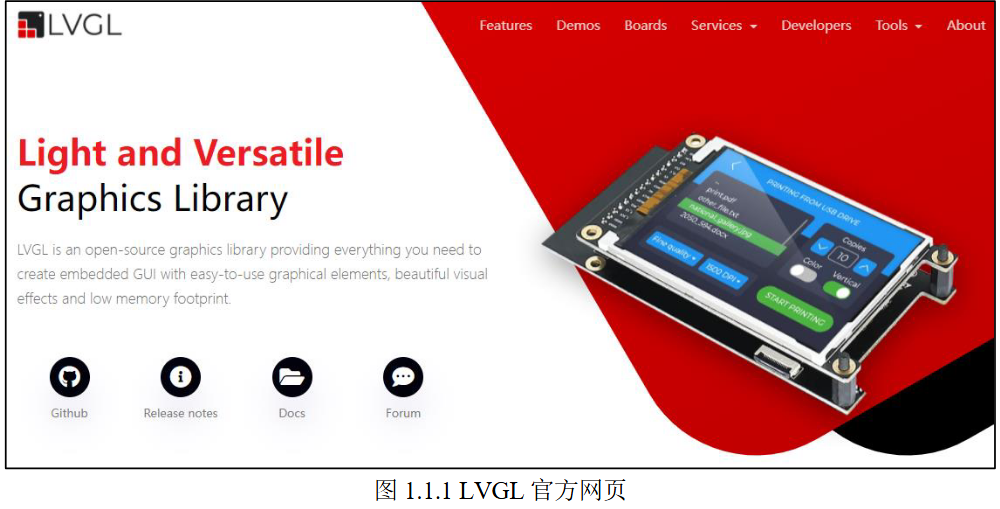 多国语言和独立于硬件之外等免费的开源图形库。LVGL官方地址为:https://lvgl.io/,该网页