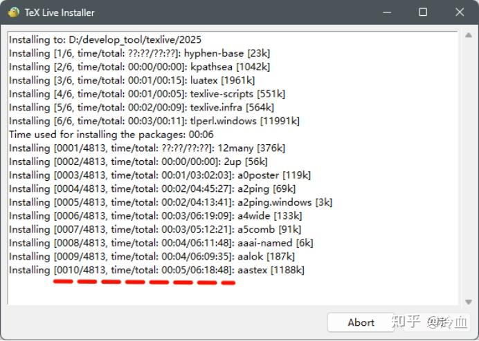 点击安装(红色线为进度和时间)