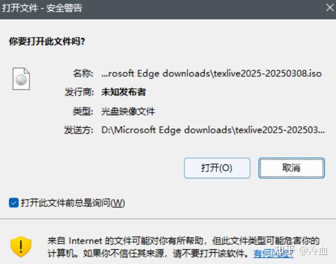 点开texlive的iso文件 (遇到安装警告点击打开)