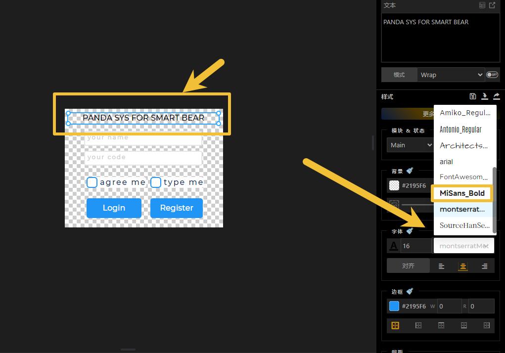然后点击控件,如图所示的地方可以找到添加的字体,注意,使用中文必须导入字体