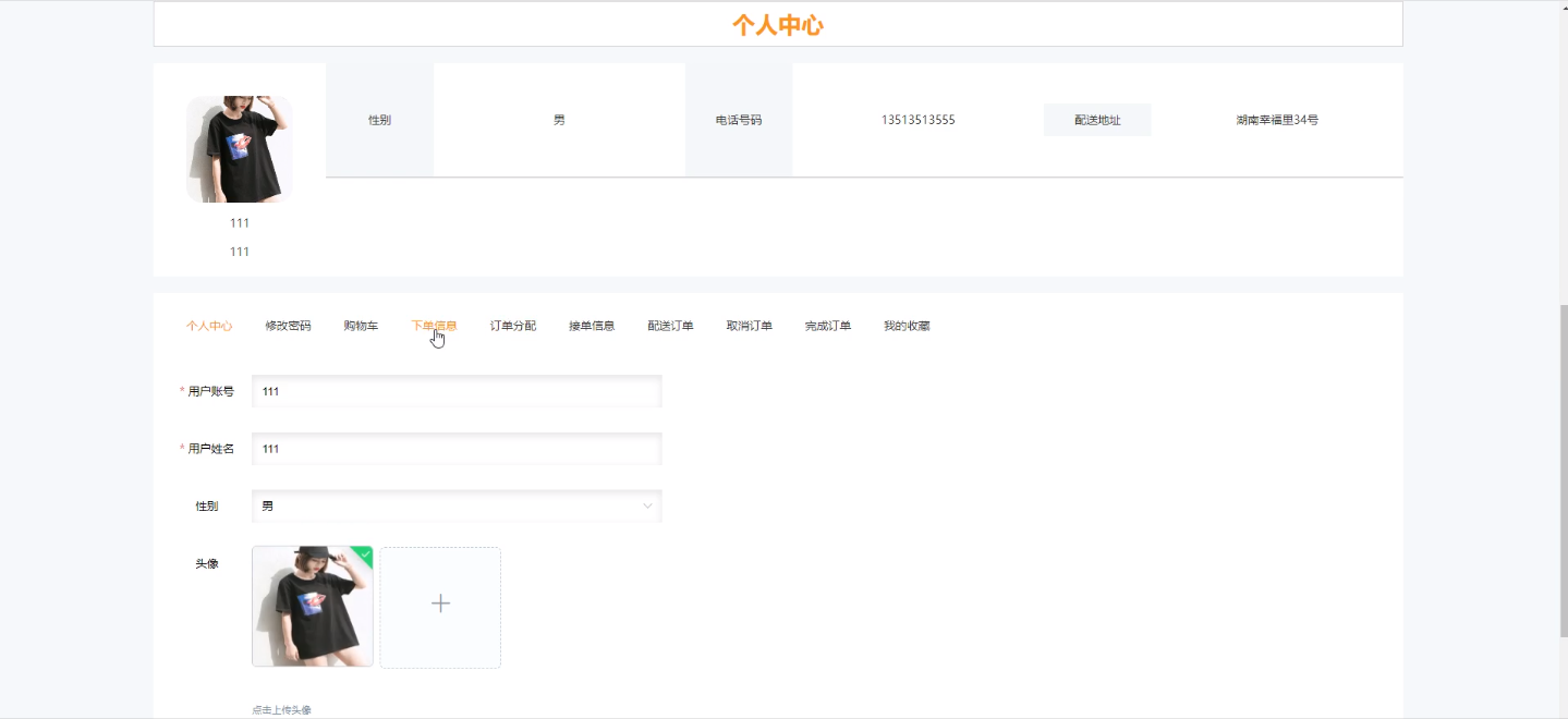 (5)下单信息:可以查看前台用户已支付的订单详情信息并进行维护管理。