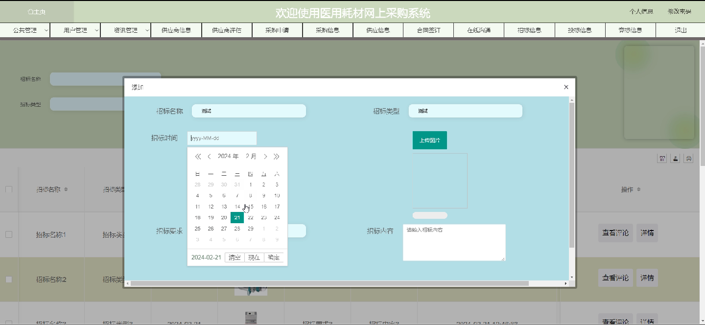 2. 系统功能还不够完善,无法提供丰富多彩的在线功能,只能实现通知公告、采购申请、采购信息、供应商信息、供应商评估、招标信息、投标信息、竞标信息等一系列功能。