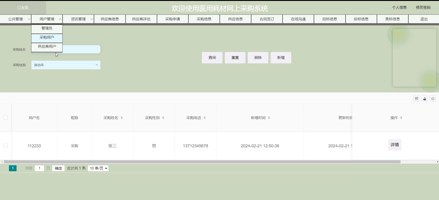 6.管理员功能,管理员可以对用户或者医用耗材采购进行管理。