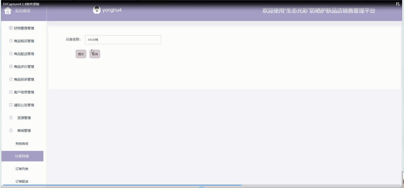 (2)该“生态光彩”防晒护肤品店销售管理平台开发与设计内容全面,管理方便可以及时的全面的处理各种错误,异常,这样避免了很多因客户的马虎操作而出现的失误,其操作方便,会员界面友好,能够上网的人都可以很好的进行操作。