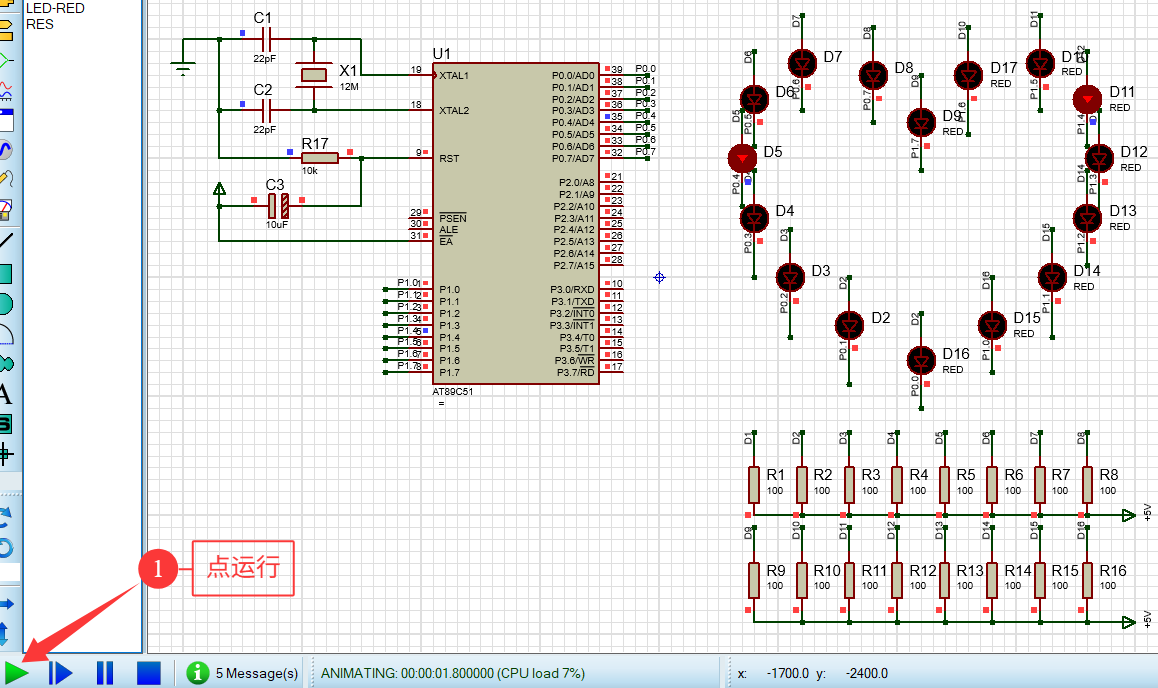 2.程序没问题后就可以将hex文件导入proteus工程中。