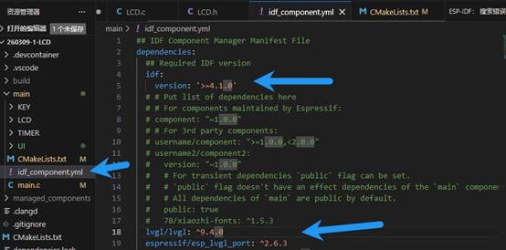 创建idf_component.yml文件,缩进不能错,内容是