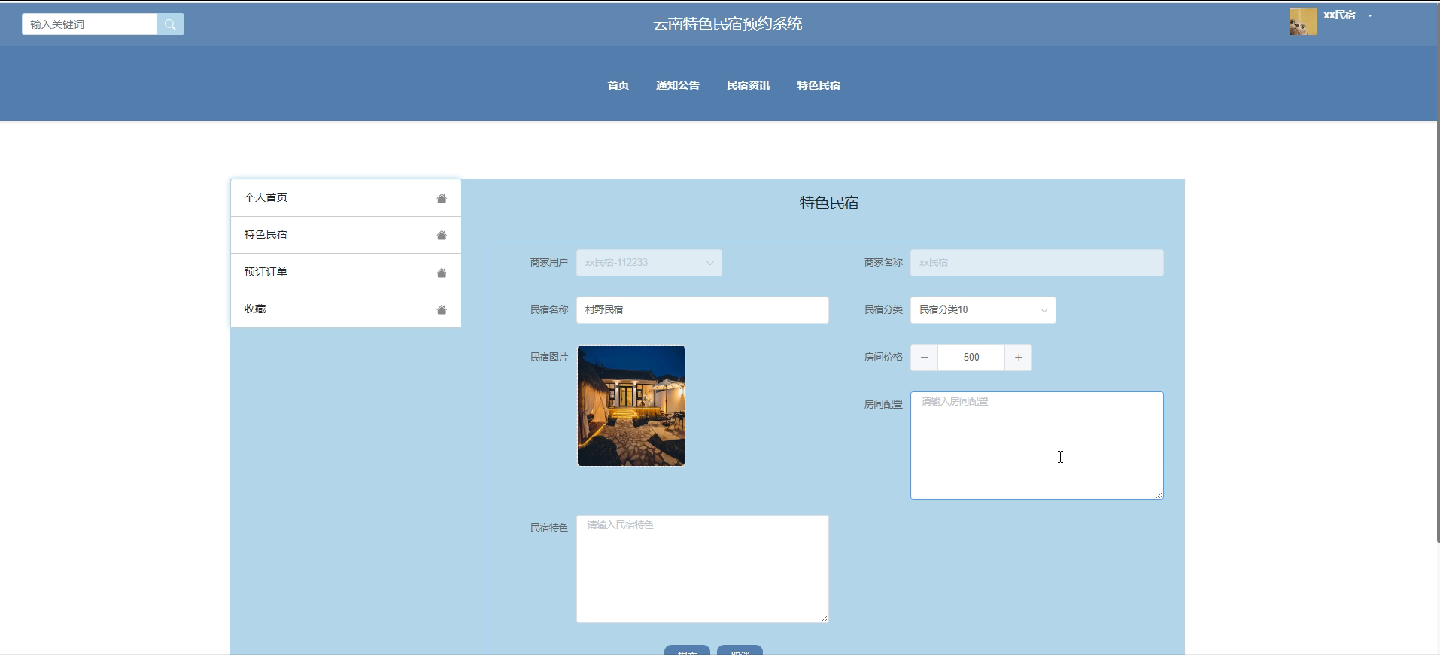 点击 “特色民宿”这个菜单,输入民宿信息即可提交信息。 |