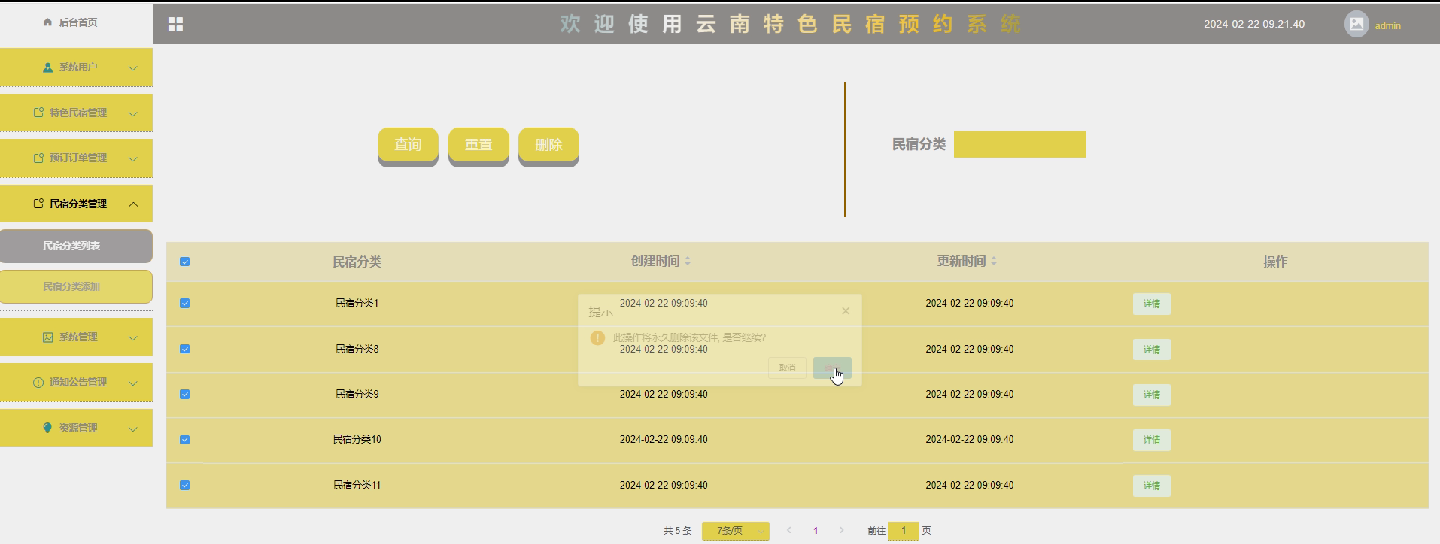 民宿分类:管理员可对特色民宿信息进行添加分类管理,。界面如下图所示。