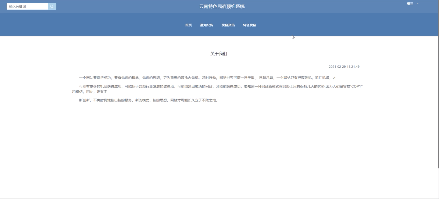 用户只要跟着云南特色民宿预约系统 的页面展示内容进行操作,就可以了。 |