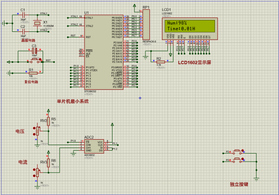 标签:51单片机、LCD1602、充放电模块、模数转换芯片