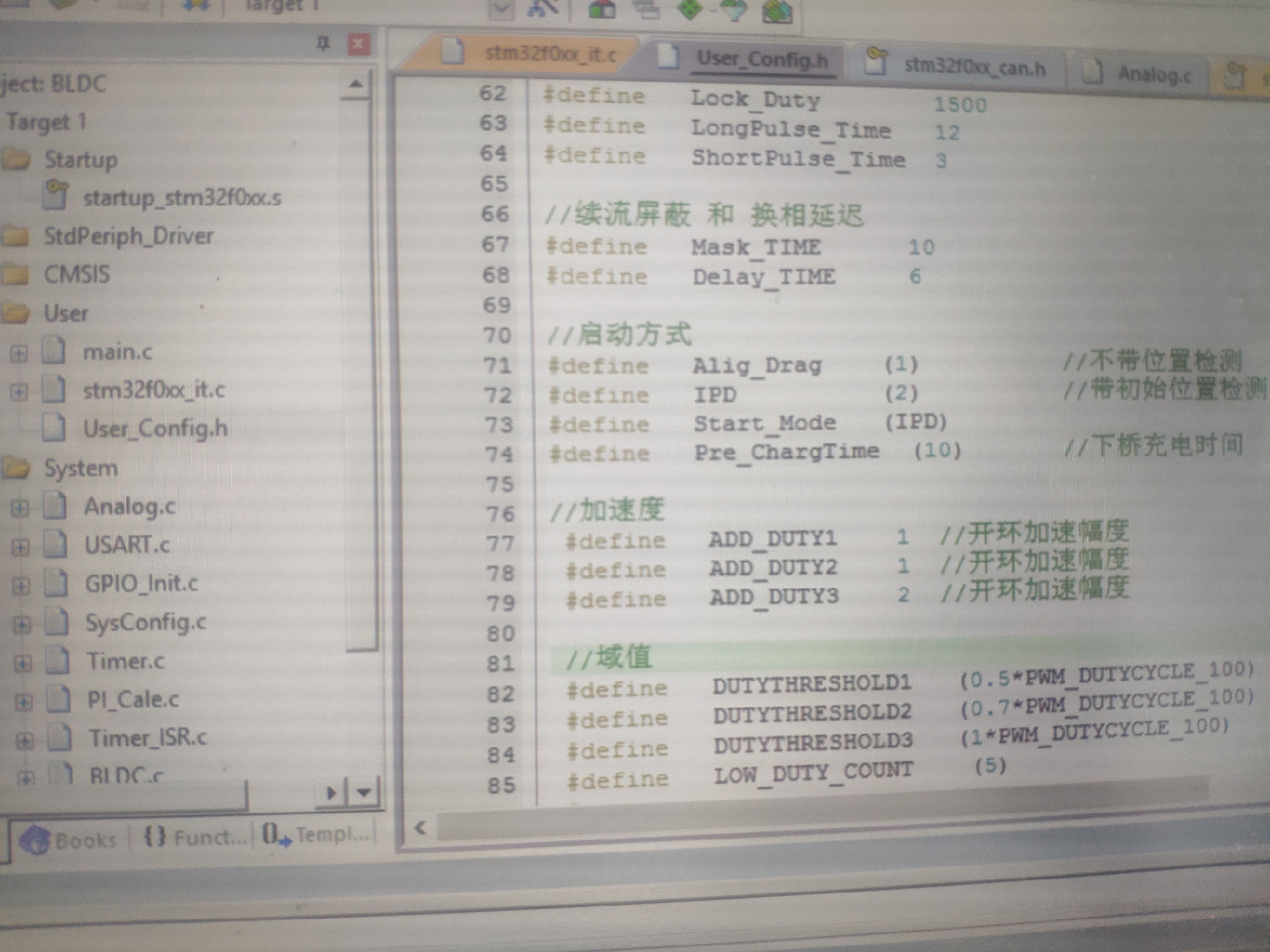 通过ADC采样电机三相端电压,检测反电动势过零点,确定转子位置,实现精确换相。
