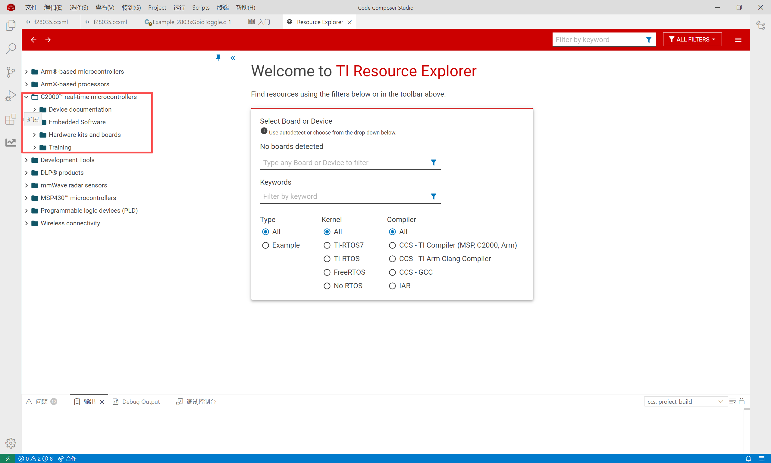 步骤4:在弹出的窗口中,确认包含「C2000」,说明安装完整,可正常开发F28035。
