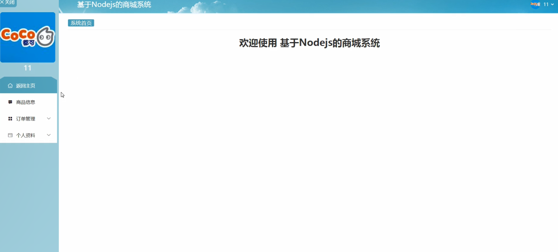 商家后台主要分为多个模块,分别是商品信息、订单管理、个人资料。具体的系统首页如下图5.17所示。
