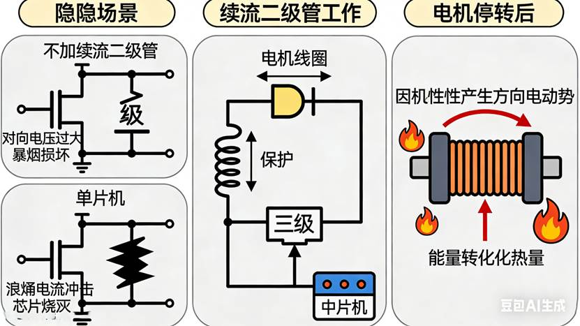 你有没有遇到过这种情况:用一个三极管驱动小电机,程序写得完美,PWM频率算得精准,电机转得欢快。突然,电机停了。然后——单片机死了。GPIO引脚烧了,芯片发热,复位也没用。你查代码、查电路、查电源,百思不得其解。最后,一个老工程师走过来,看了一眼,说:“加个二极管。”你半信半疑地焊上一个小二极管。电机停了,单片机没死。