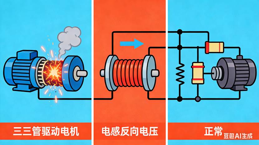 - 运气好。电机反向电压没那么高,三极管耐压足够,侥幸没出事。但这种电路,早晚会出问题——也许是下一次启停,也许是环境温度变化,也许是某个静电干扰。