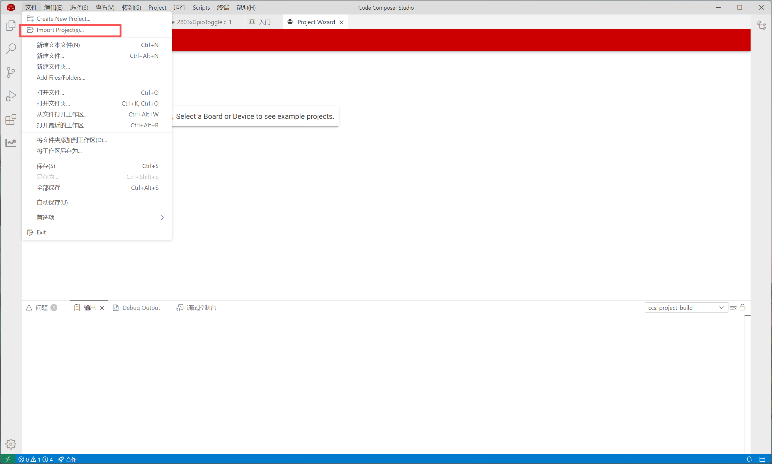 1、打开CCS,点击菜单栏「开始」→「导入工程」;
