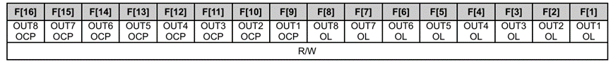 另外,芯片支持故障检测及状态输出,即当芯片出现过温、过流和短路现象时,会通过FAULT引脚输出低电平信号,MCU可以检测FAULT引脚的数据。然后如果想知道具体是哪个OUT输出造成的过流或者短路,可以通过回读故障寄存器的值来识别。