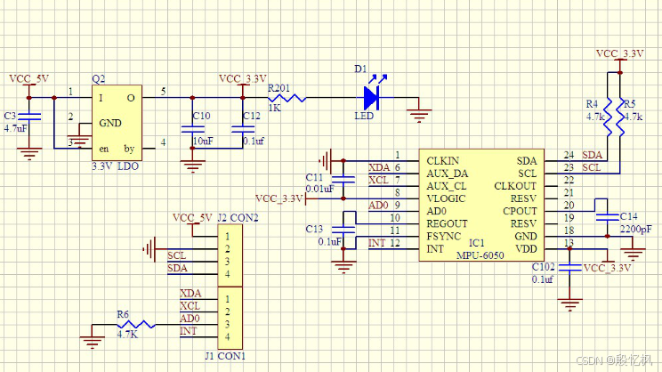 如果接V3.3,则IIC地址为0X69(不包含最低位).