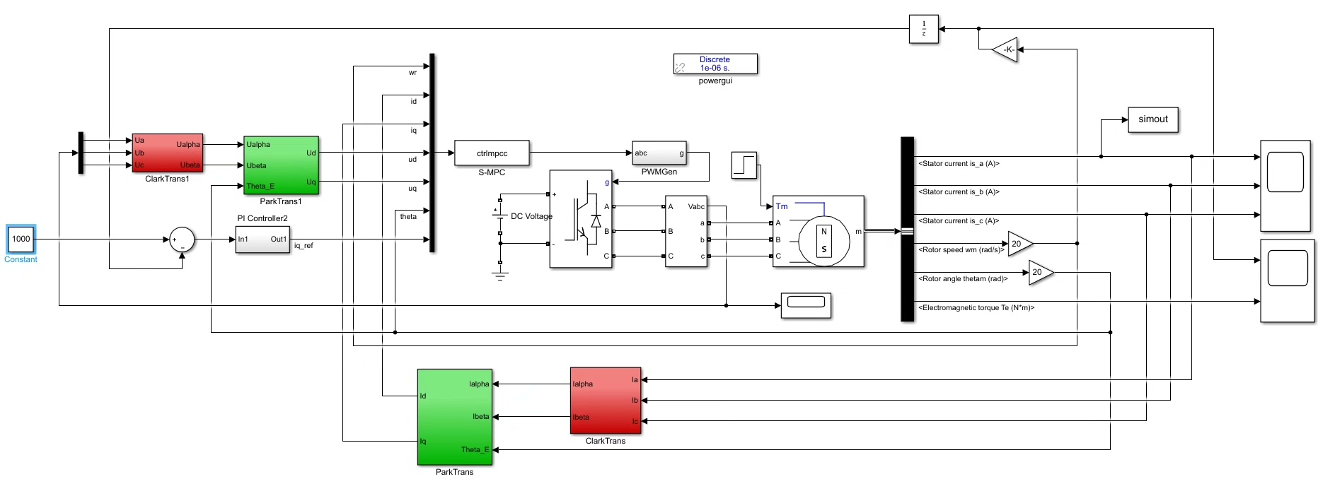 三相永磁同步电机模型预测电流控制(MPCC)。